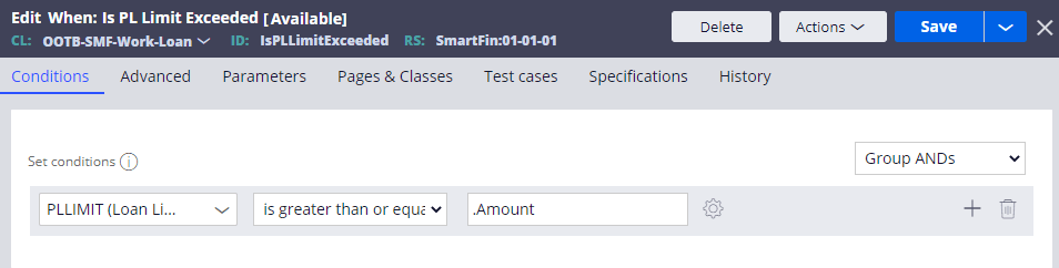 Once you define, these appear as ‘Configuration Set’ in defining WHEN conditions as below.