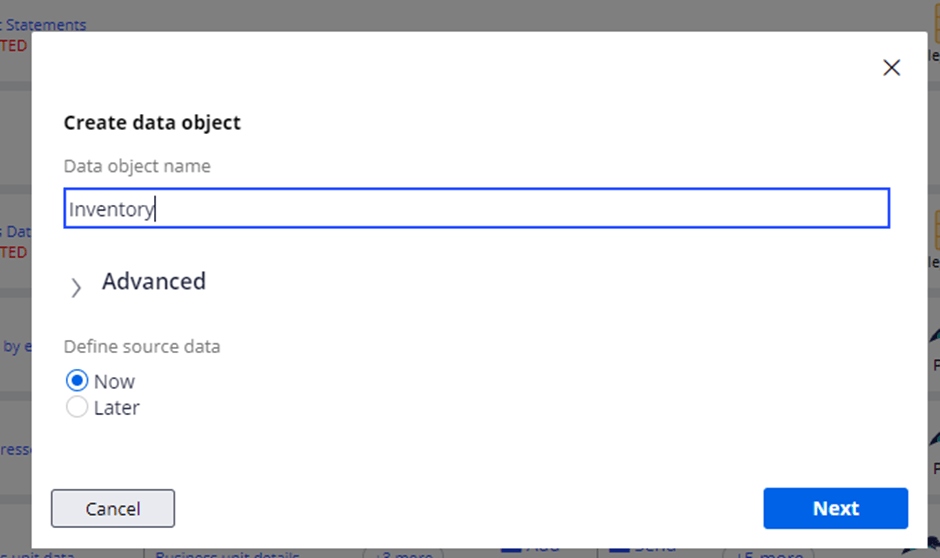Provide Data object name (to have Data model created with the given name)